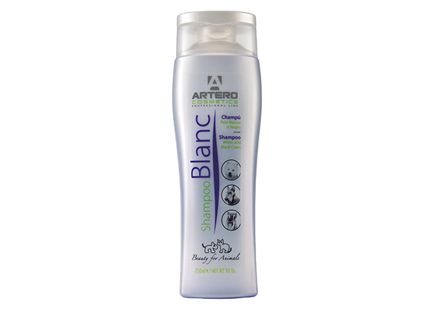 A shampoo designed for the care of white coats. It’s soft cleansing properties along with the gentle brightening action of the product, help clean and leave the coat looking bright and shiny. Eliminates the unwanted yellow tones which appear on most white coats. pH 5,5.