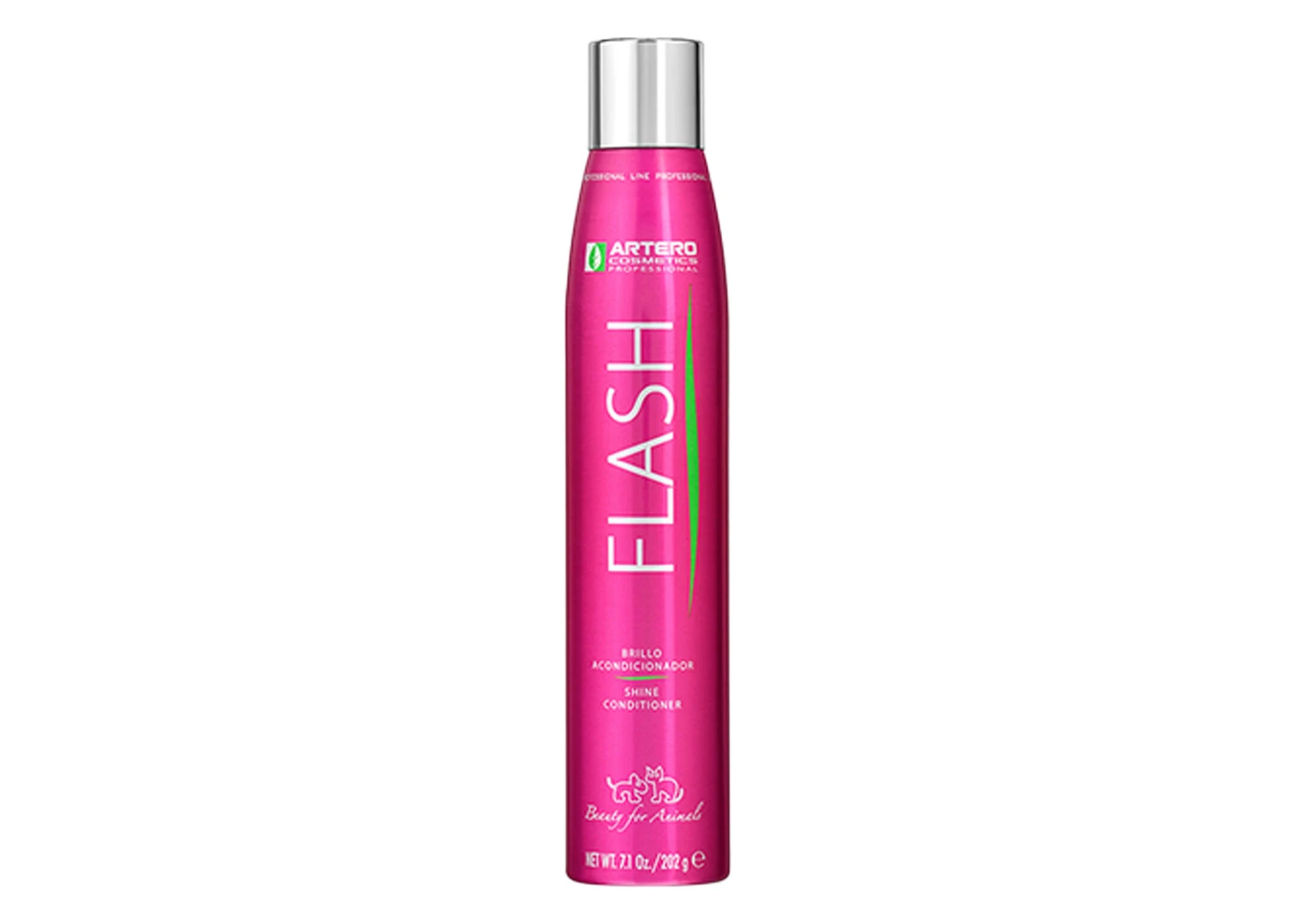 Spray that gives an extraordinary shine and silky effect to all type of coats. The careful selection of its ingredients give Flash a non-greasy, conditioning effect which makes it an ideal softener for dry coats. The result is a shiny film that prevents tangling and helps brushing.