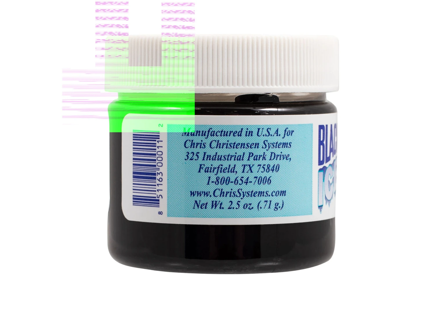 Black Ice Creme has been formulated to apply easily and afford excellent coverage without being oily or heavy. It contains dense pigmentation for color intensity to cover even the most severe stains and flaws. It may be used in conjunction with Chris Christensen Systems Rich Ebony Chalk.