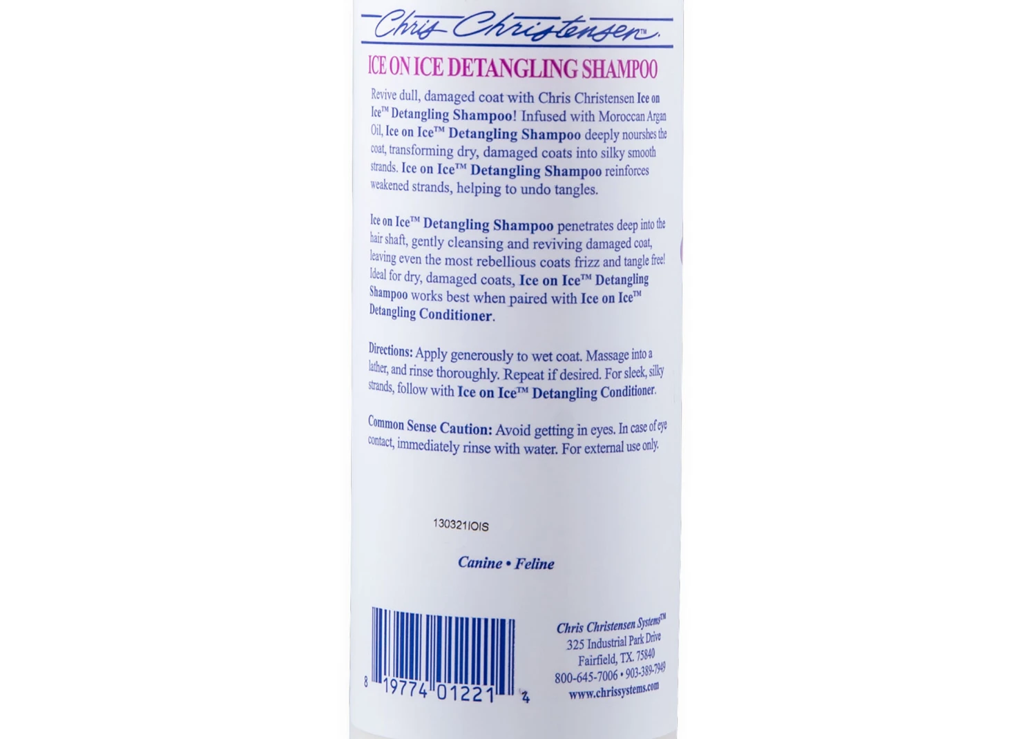 Keep your pet’s coat glossy and tangle-free with Chris Christensen Systems Ice on Ice Detangling Shampoo. This luxurious shampoo is infused with Moroccan Argan Oil to nourish dull, damaged coats. Deeply penetrating the hair shaft, this shampoo works to revive even dry, damaged coats and turn them into a sleek, smooth mane.