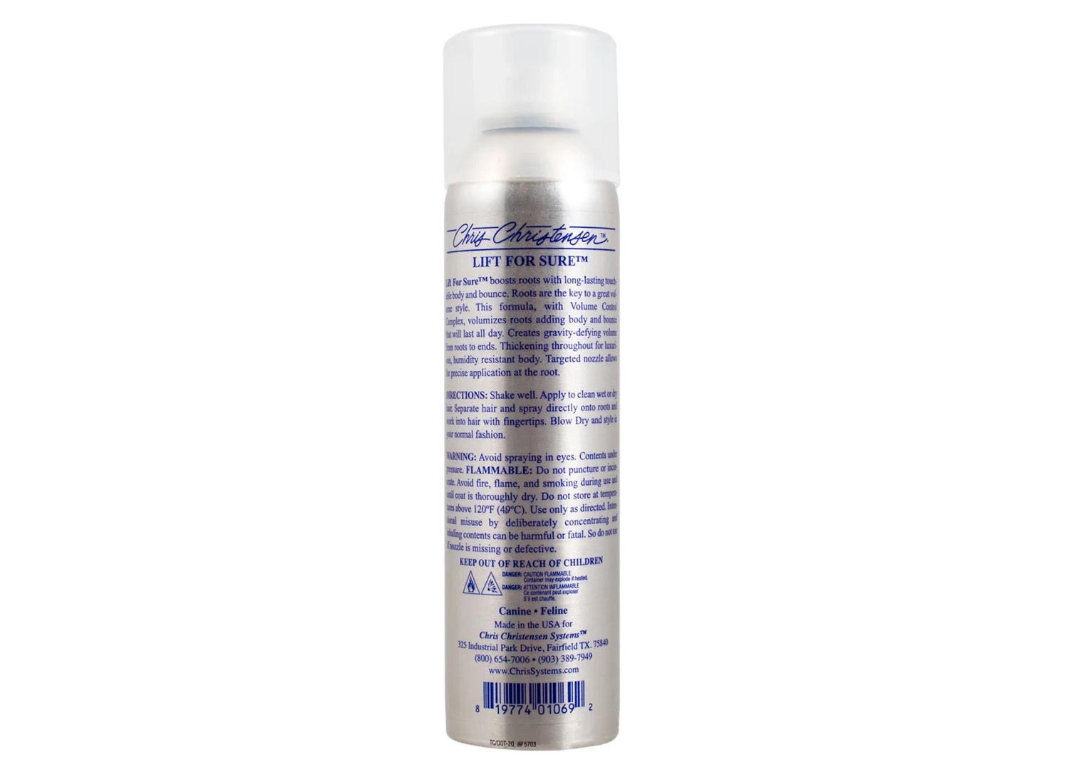 Lift For Sure boosts roots with long-lasting touchable body and bounce. Roots are the key to a great volume style. This formula, with Volume Control Complex, volumizes roots adding body and bounce that will last all day. Creates gravity-defying volume from roots to ends. Thickening throughout for luxurious, humidity resistant body. Targeted nozzle allows for precise application at the root