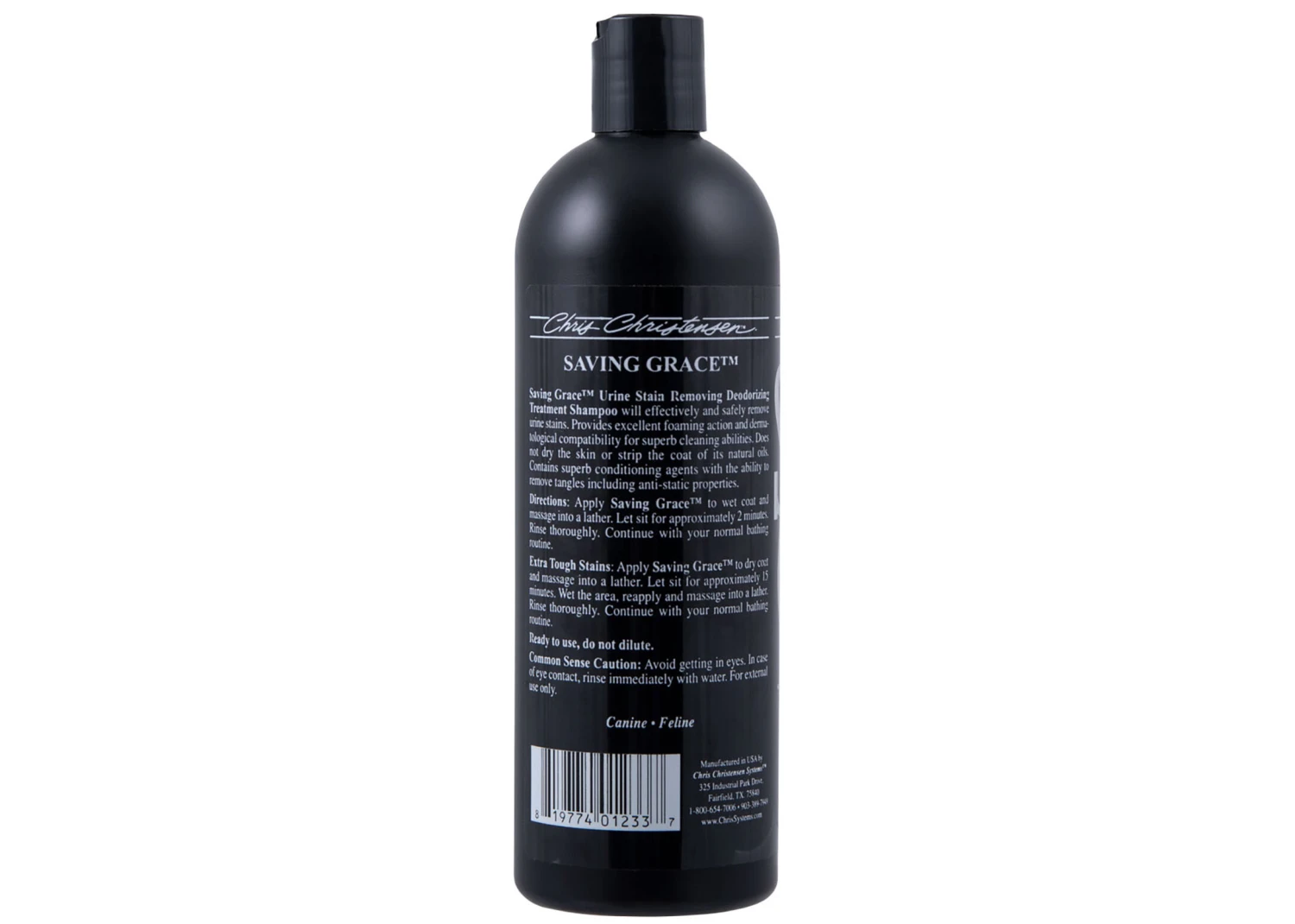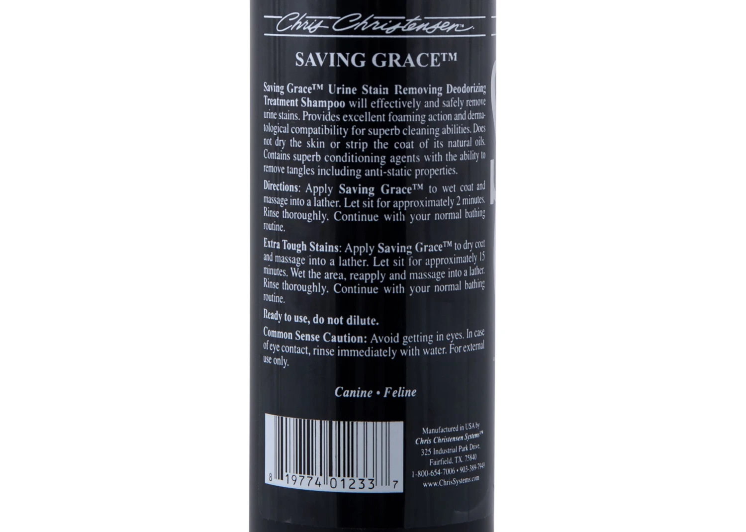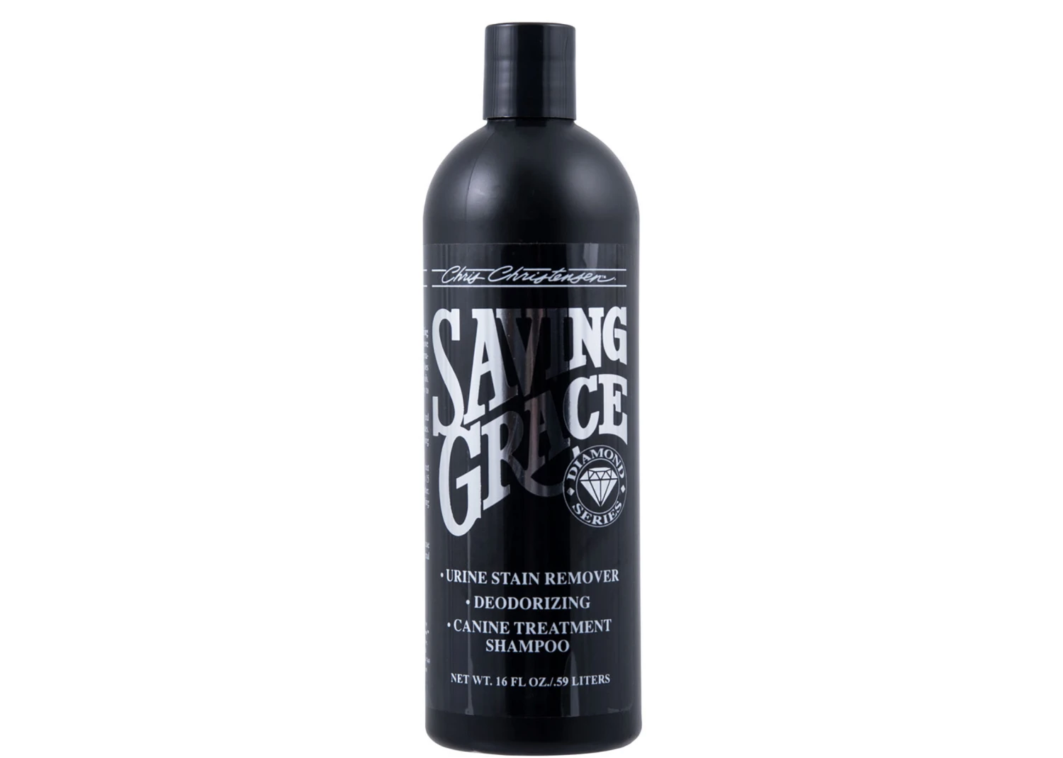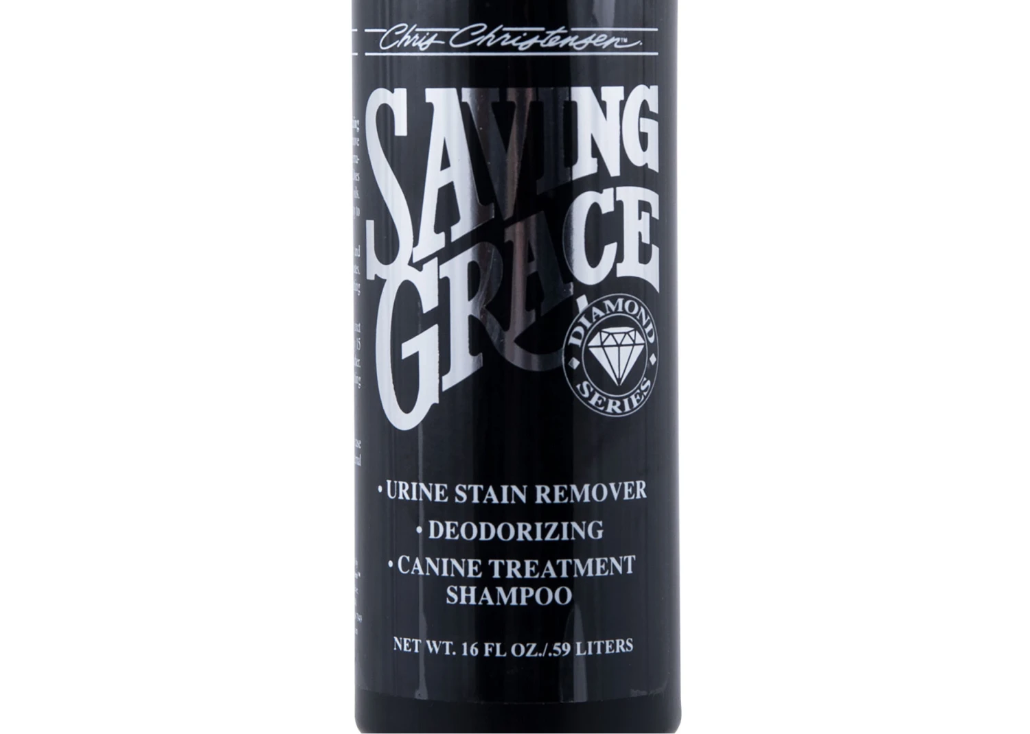 Saving Grace Shampoo from Chris Christensen; the perfect way to wash your pet and restore their confidence! Our Diamond Series formula is specifically tailored for urine stain removal and deodorizing. Not only does it get rid of unsightly stains but it also produces an excellent foaming action, leaving your pet’s coat fresh, clean, and healthy looking.