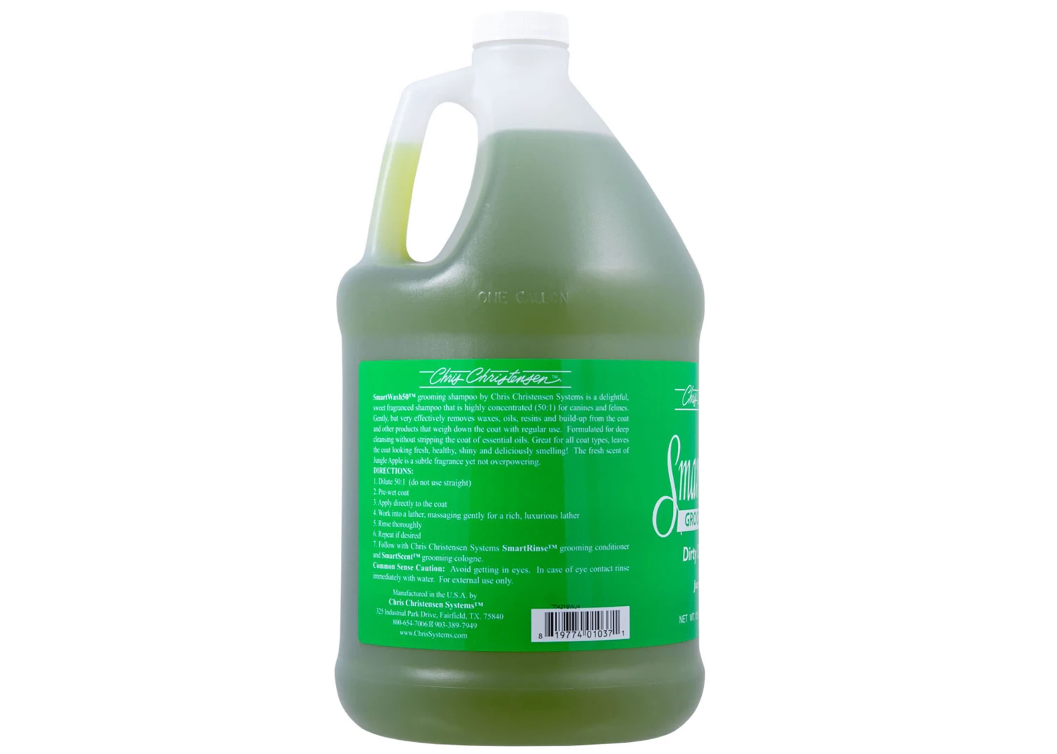 Smart Wash 50 grooming shampoos by Chris Christensen Systems are attractive fragranced shampoos that are highly concentrated (50:1) for canines and felines. Formulated to deep cleanse without stripping the coat of essential oils, Smart Wash 50 shampoos gently, but very effectively remove waxes, oils, resins and build-up from the coat, leaving the coat looking fresh, healthy, shiny and smelling delicious! Our fresh scents are subtle fragrances that are not overpowering. Suitable for all coat types.