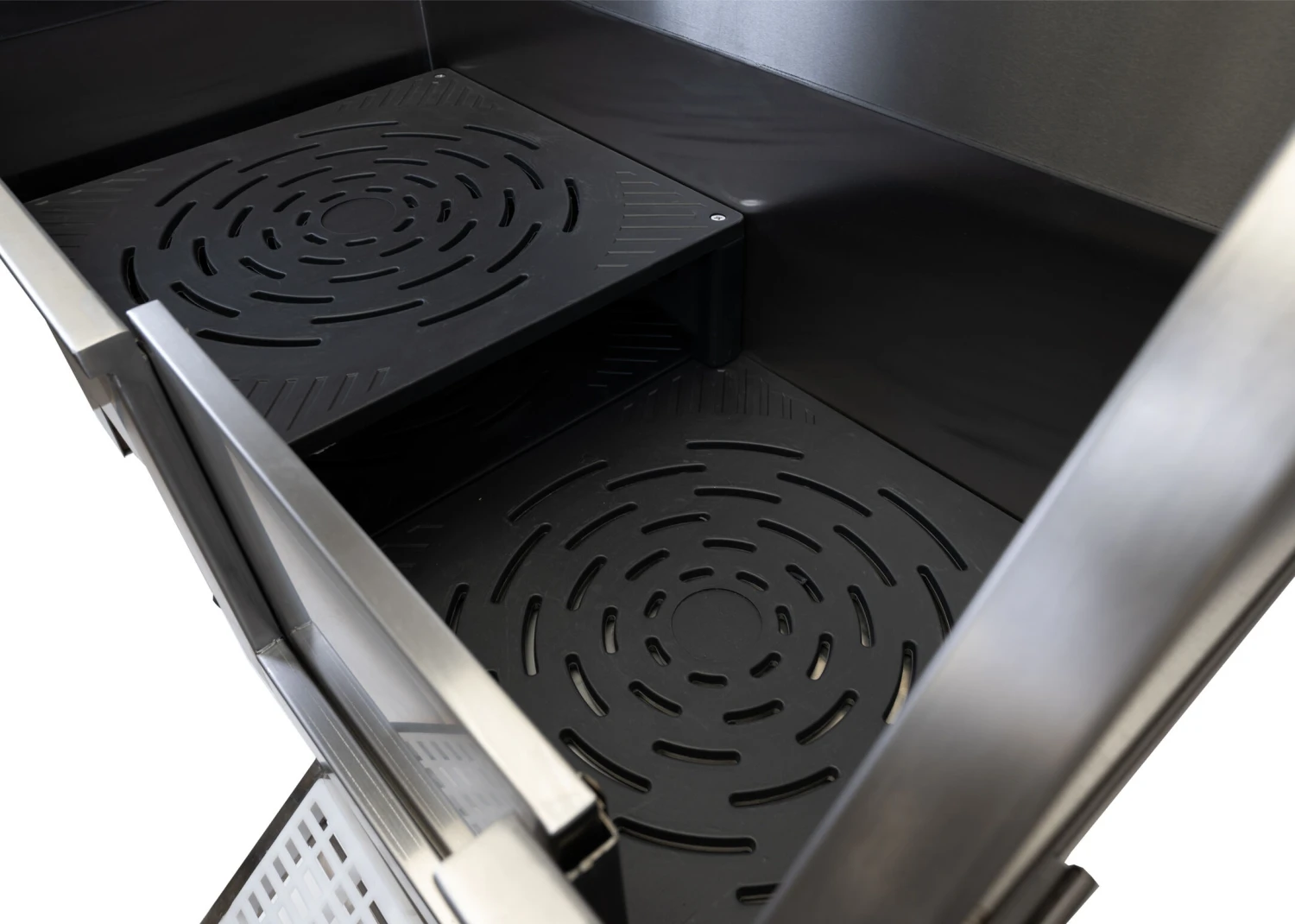 The sturdy frame and the lift-out door are perfect for larger pets that may need a bit of extra help getting into their bath. And with the specially designed locking wheel ramp attached to a swivel with ball bearings, you can easily swing the ramp out of the way when not in use. This makes it ideal for busy salons or any other place that needs high-quality, low-maintenance pet care equipment.