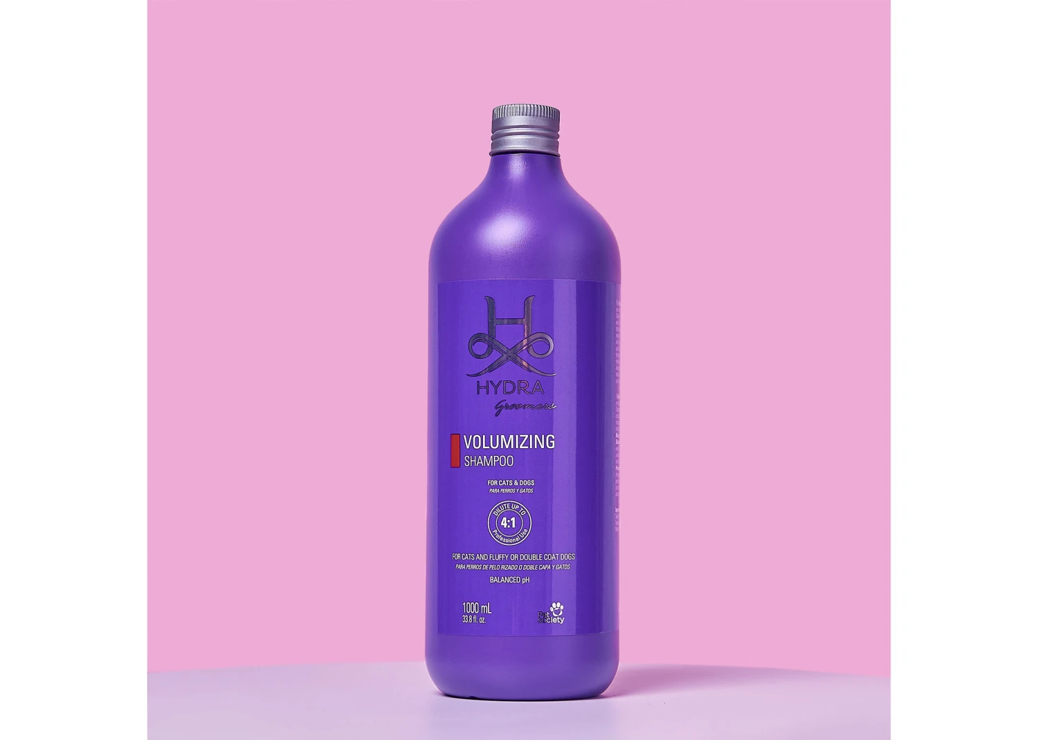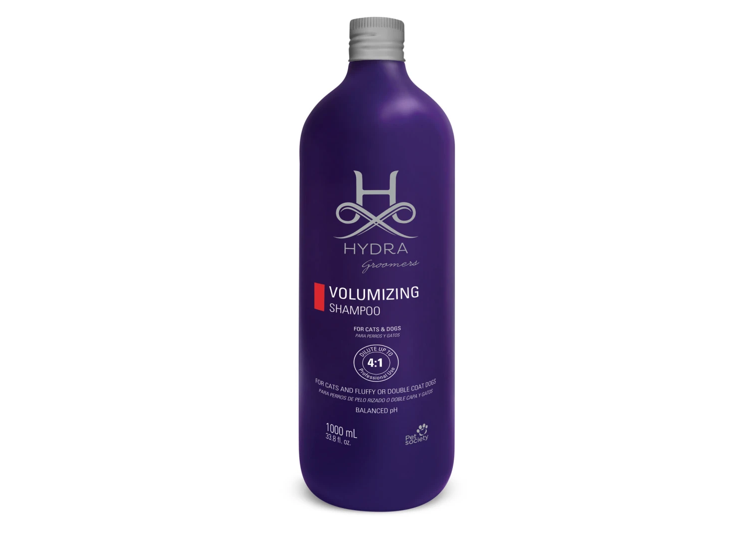 Hydra Volumizing Shampoo is formulated for professional use on dense and curly coat types such as Poodles, Bichon Frisés, Chow-Chows, and Spitz.  This shampoo is also excellent for use on cats such as Persians and Exotics. The concentrated formula contains keratin and wheat proteins that boost volume and increase the texture of the coats. This is a professional shampoo designed by groomers for groomers and is suitable for all breeds of dogs and cats and may be diluted 4 to 1. Available in 1L and 5L size.
