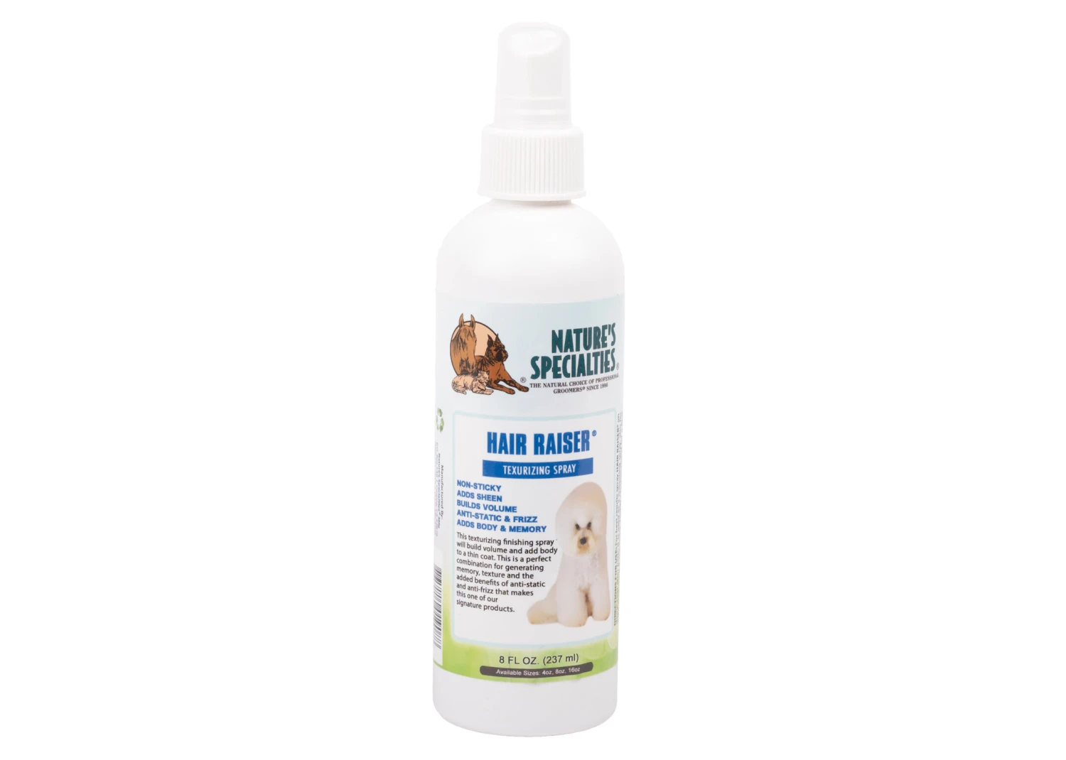 Experience the perfect blend of texture and the added benefits of anti-static and frizz control. Nature’s Specialties Hair Raiser is more than just a conditioner; it’s a signature product that transforms your pet’s coat, making it easier to style and groom.